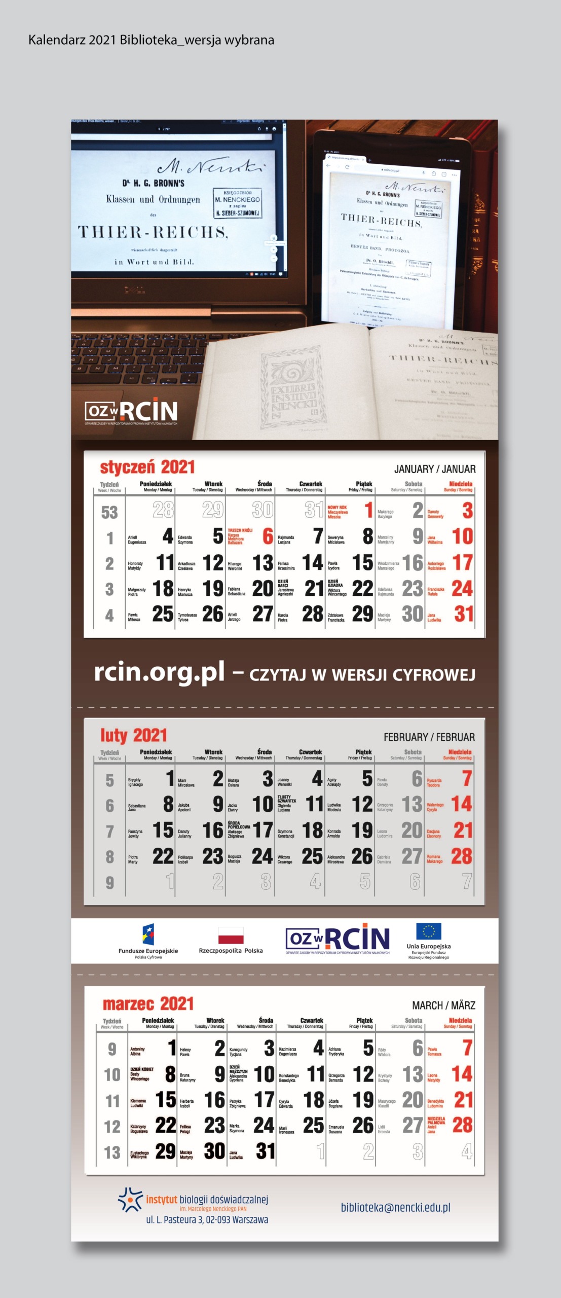 Zapytanie ofertowe nr 134/2020 na dostawę kalendarza trójdzielnego na 2021 rok dla Instytutu Biologii Doświadczalnej im. Marcelego Nenckiego Polskiej Akademii Nauk