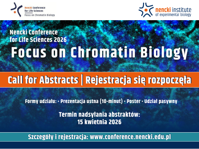 Rejestracja na Nencki Conference for Life Sciences 2026 (17-19 czerwca 2026, Warszawa) już się rozpoczęła! Wydarzenie poświęcone będzie najnowszym osiągnięciom w obszarach: Chromatin & Metabolism, Chromatin Structure & Transcriptional Regulation, Computational Approaches in Genome ...